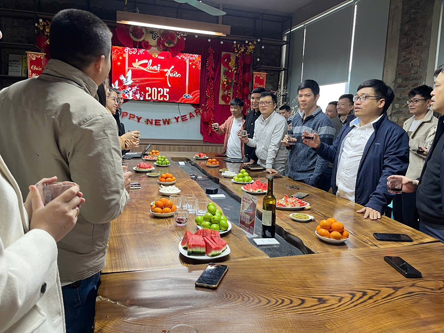 Không khí ngày xuân thêm trọn vẹn với bữa tiệc khai xuân ấm cúng. Những ly rượu vang sóng sánh, những món ăn nhẹ thơm ngon cùng những câu chuyện vui vẻ đã kết nối mọi người lại gần nhau hơn. Niềm hân hoan hiện rõ trên từng gương mặt, báo hiệu một năm mới hứa hẹn nhiều thành công và đột phá.